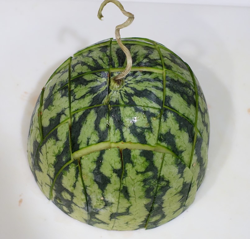 夏天就是要吃西瓜,這樣才痛快。搬回來圓滾滾的西瓜,教大家一招切法,超級方便吃,再也不會有手黏黏、西瓜汁亂滴的情形,超方便。1.首先把西瓜從中間橫著切開,並把圓的一端朝上。2.接著把西瓜切成約3x3公分的格子狀。 3,看出厲害了嗎?西瓜可以像這樣直接拿起來吃。像吃冰棒一樣的吃法,很方便吧!我下回要試試把切好的西瓜,整個直接放進冰箱,讓它變成西瓜冰棒。