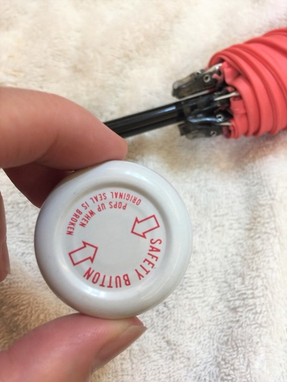 利用熱熔膠,我把瓶蓋和雨傘的桿子結合。