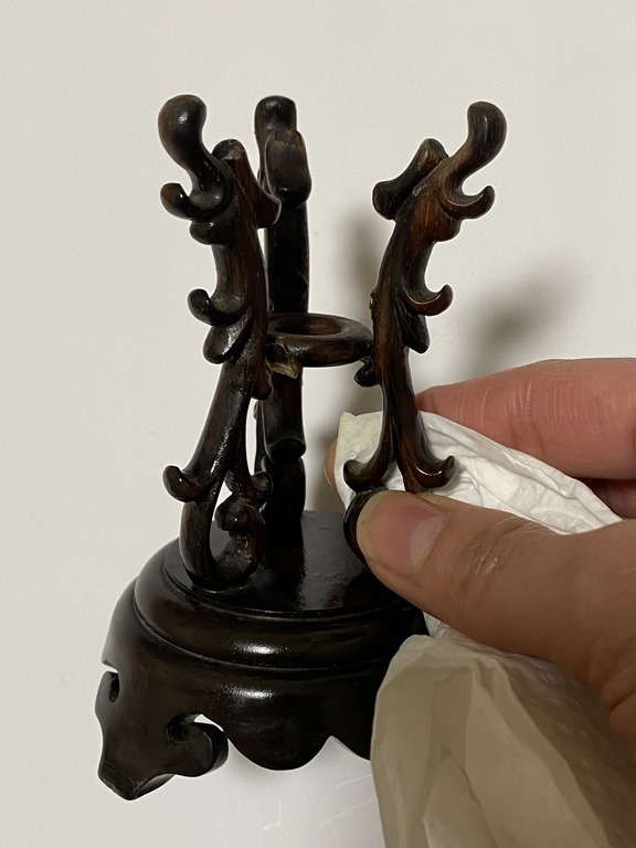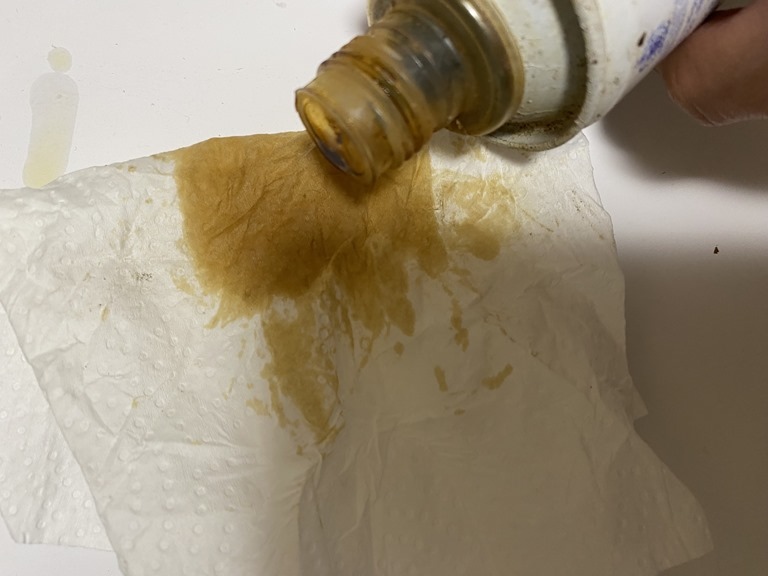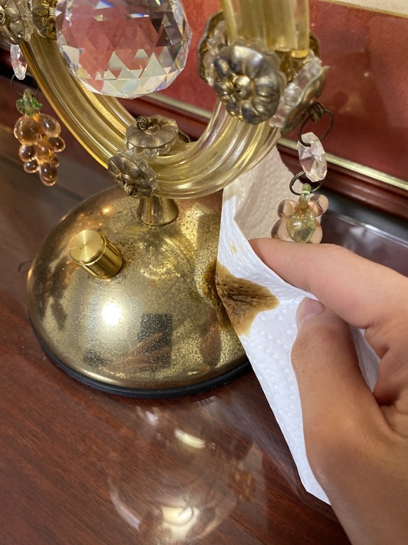 把適量的銅油倒在紙巾上,再輕輕擦拭,亮澤度就出來了。