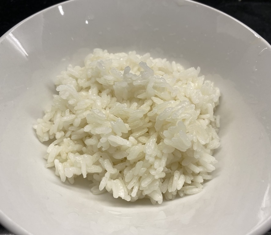 剛從微波爐取出的飯,看起來有點內濕外乾。